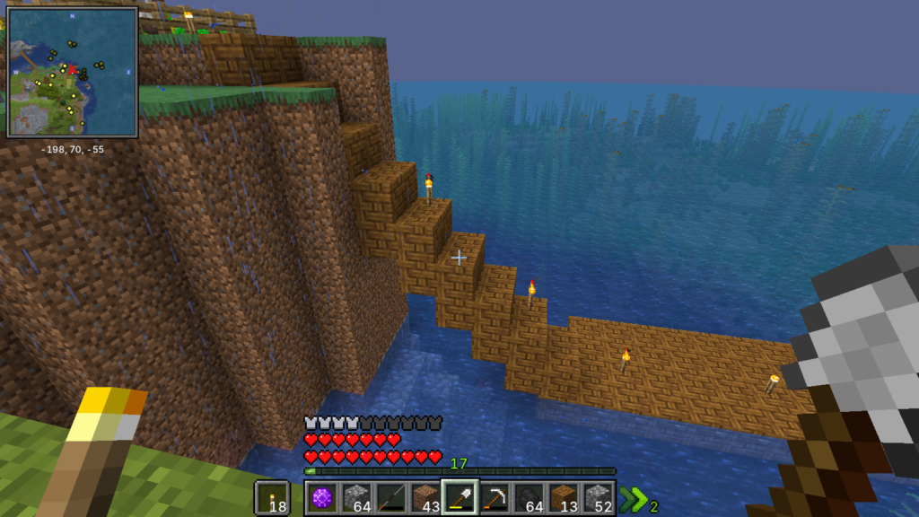 はしごを置くことも考えたけど、見栄えの事も考えて、島の上から海まで降りられる、あるいは海から島にあがってこれるような停泊所のようなものを作ってみました。